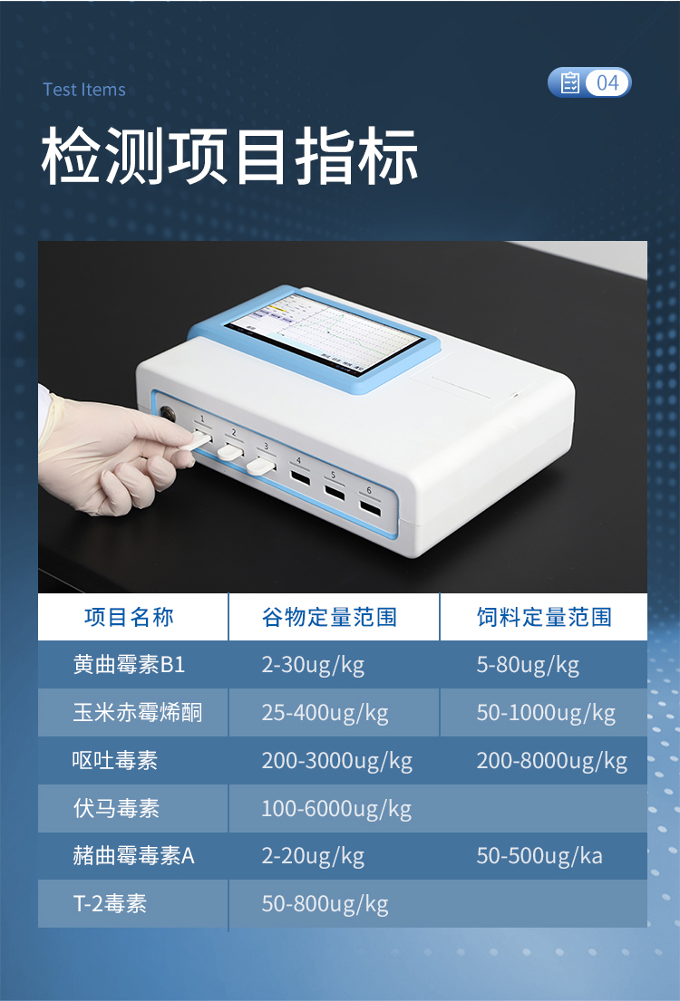 | 伏馬毒素 | 100-6000ug/kg | 玉米、小麥、麥麩、豆粕、花生粕、玉米胚芽粕、膨化玉米、DDGS、噴漿玉米皮、濃縮料及犢牛顆粒料及成品飼料 |